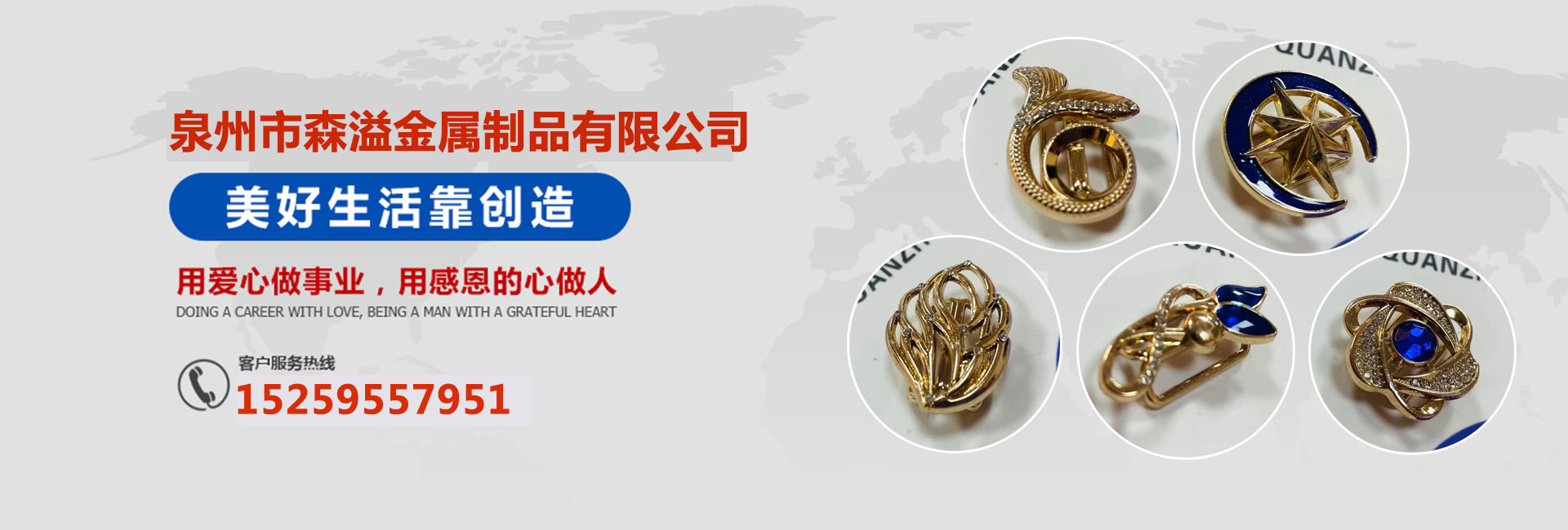 泉州市森溢金属制品有限公司,自2008年创立以来,矗立于福建省泉州石狮市这片繁荣的热土之上,以其卓越的品质、创新的设计的服务,赢得了业界的高度认可与广大客户的深厚信赖。公司致力于生产各类五金饰品配件,广泛应用于鞋子、服装、箱包、工艺品等多个领域,为国内外众多知名产品提供了优质的产品和服务。作为一家集产品设计、开发、生产为一体的综合性企业,我们始终坚持“品质至上,顾客至上”的宗旨,致力于为客户提供优质的产品和满意的服务。公司拥有一批高素质的研发团队和经验丰富的生产人员,以严谨的工作态度、精湛的技术水平,不断推出新颖独特、质量卓越的五金饰品配件。公司注重以人为本的管理理念,尊重每一位员工的价值和尊严,关注员工的成长和发展,为员工提供良好的工作环境和福利待遇。公司深知,只有员工满意,才能生产出令客户满意的产品,才能实现企业的持续发展和壮大。在严把质量关的同时,公司还注重不断开发新品,以满足市场的不断变化和客户的不同需求。公司积极引进国内外的技术和设备,不断提升自身的生产能力和技术水平,确保产品始终处于行业地位。同时,公司还注重价格合理性,力求为客户提供具性价比的产品。